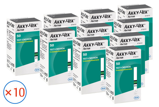 Тест-смужки Акку-Чек Актив (10 упаковок по 50 штук)